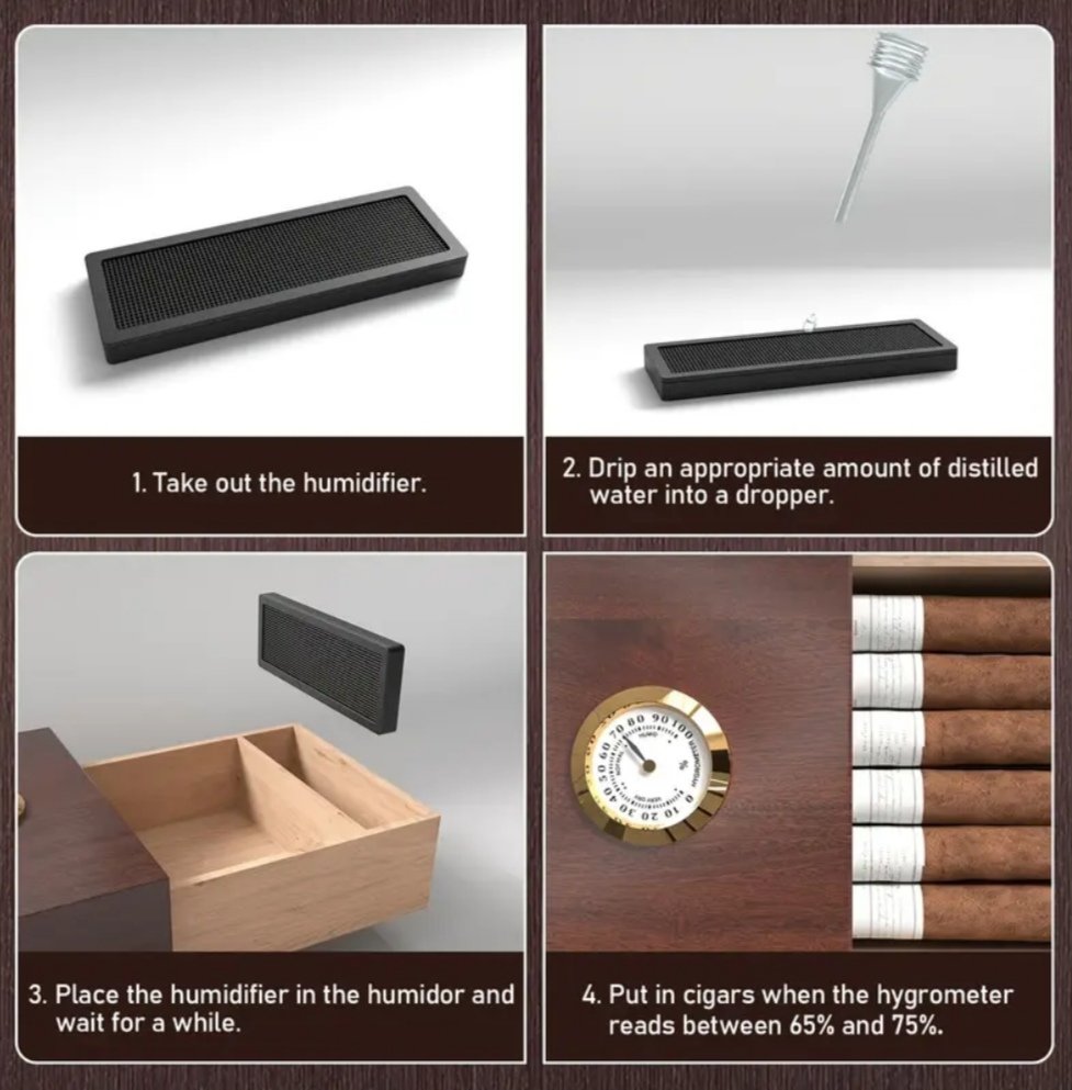 Eleva tu experiencia con puros con este humidor multifuncional premium. Fabricado en elegante madera con acabado sofisticado, incluye compartimento para puros, higrómetro integrado, cortador, cenicero deslizable con soporte para móvil y espacio para tu copa. Ideal para quienes valoran el diseño, la funcionalidad y el placer del ritual del cigarro en un solo lugar.