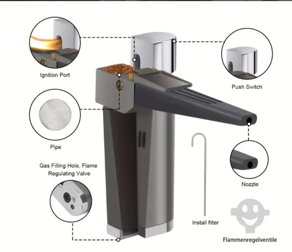 El Encendedor pipa Volcan Flamr está diseñado para los verdaderos conocedores del arte del encendido. Con un sistema de llama tipo soplete ajustable, botón de encendido rápido y estructura ergonómica, ofrece una experiencia segura y controlada. Su boquilla direccional, válvula de regulación de flama y tanque recargable lo hacen ideal para fumar  , ofreciendo una llama potente, constante y confiable. Un aliado esencial para quienes valoran precisión, estilo y funcionalidad en cada ritual.